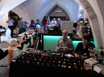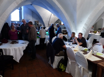 Sonnabend ab 9.00 morgens trudelten nach und nach die angemeldeten Mitglieder im Keller der Rathaus Arkaden ein. Trotz des etwas beengten Raumes fanden die 55 Personen nebst einigen Gästen einen Platz für ihre mitgebrachten Bernsteinschätze, ob zum Zeigen oder zum Verkauf. Für das leibliche Wohl und den großen Durst war ebenfalls bestens gesorgt, von 11.00 bis 14.00 Uhr nahmen wir am üppigen Brunch des Hauses teil.