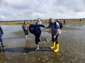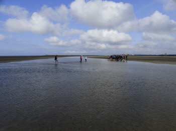 Sonntagmorgen Ca. 40 Mitglieder treffen sich auf dem Marktplatz: Mit dem „Hitzlöper“ gab’s eine Rundfahrt durch die Ortsteile Böhl, Dorf, Bad und Ording mit den entsprechenden Erklärungen. Die Fahrt endete an den Stelzenhäusern Süd am Watt, von wo uns ein Wattführer eine gute Stunde durch’s Watt führte und uns die Flora und Fauna näher brachte.