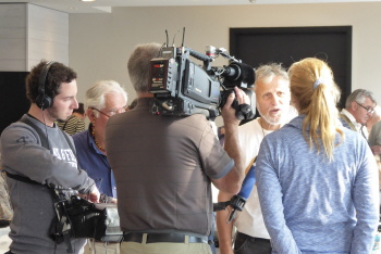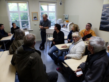 Von 10 – 12 Uhr besuchte uns wieder der NDR, interviewte Mitglieder und filmte Bernstein. Mittags kam auch noch ein Reporter der Husumer Zeitung, der sich auch die ersten Vorträge anhörte.