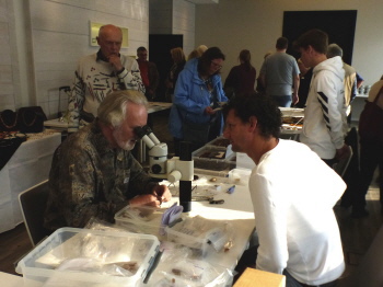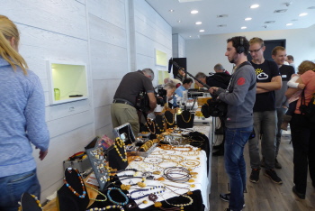 Sonnabendmorgen um 9 Uhr begann der Aufbau der Tische für die Präsentationen und die Einrichtung der Technik. Von 10 -14 Uhr konnten auch Gäste die ausgestellten Bernsteine, Bernsteinschmuck und Literatur betrachten. Obwohl direkt vor dem Eingang Plakate hingen, im Husumer Blatt die Veranstaltung angekündigt war und auch im Flyer und Veranstaltungskalender der Tourismuszentrale die Öffentlichkeit eingeladen war, hielt sich die Besucherzahl in Grenzen.