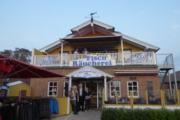 Und jetzt weiter zum Tagungsablauf: Am Sonnabend um 19 Uhr gab’s Essen in der Räucherscheune, wo Fisch frisch geräuchert wird. Dort ließen wir den Tag mit reichlich Bier, Wein und SPO ausklingen.