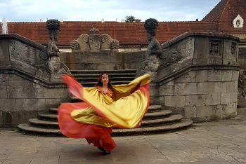Zum offiziellen Ende der Tagung gab es noch einmal einen Kulturbeitrag - Lara Fleißner vom Alternativen Tanzclub tanzte auf der Brunnentreppe für uns einen Serpentinentanz und erhielt hierfür viel Beifall.