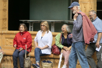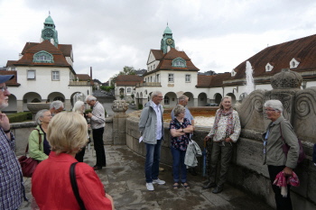 Sonntagvormittag trafen sich noch etwa 20 Mitglieder zu einer fachkundigen Führung durch den Sprudelhof, die ehemalige Kuranlage, Europas größtes geschlossenes Jugendstilensemble.