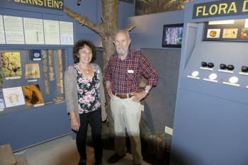 Nach den Vorträgen und der Mittagspause nutzten die Tagungsteilnehmer die Gelegenheit, um in kleinen Gruppen das Bernsteinmuseum zu besuchen. Es gab wohl niemanden unter unseren Mitgliedern, der nicht beeindruckt war. Auf kleinem Raum auf zwei Ebenen verteilt präsentieren B. & H. Fleißner ihre Version von "Faszination Bernstein": Evolution, Steinfossilien, Lagerstätten und Inklusen aus aller Welt, fachkundig arrangiert nicht nur für Laien. Begleitet von 3-D Aufnahmen und Fotos, kann der Besucher per verschiebbaren Mikroskopen über die Vitrinen mit Einschlüssen hin- und herfahren und in die Welt der Inklusen eintauchen. Entwickelt, ausgeführt und finanziert in 10-jähriger Bauzeit ohne jegliche finanzielle Fördermittel haben Brigitte & Helmut ein wahres Kleinod inmitten von Bad Nauheim errichtet. Eine Reise wert!