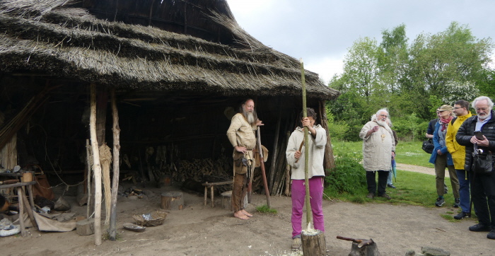 Um 11:00 Uhr setzte sich das Tagungsprogramm mit einer Führung durch das Steinzeitdorf Albersdorf fort. Sehr kompetent wurde nicht nur viel Informatives über die verschiedenen Epochen und Besonderheiten der Steinzeit vermittelt. Es bot sich auch die Gelegenheit, beispielsweise Wikingerperlen zu erwerben sowie sich einer steinzeitlichen Zahnbehandlung oder Schädeltrepanation zu unterziehen. Soweit ich es mitbekommen habe, hat aber niemand von Letztgenanntem Gebrauch gemacht.